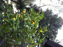 Now, I’m eyeing the palm tree in the backyard. The wind has brought down these pieces that resemble huge pencil shavings, and frankly it looks weird standing next to the uppity, haughty redwood. There’s the orange tree in the back corner. Sure, I like the idea of a fruit tree, but I’ve never actually eaten one of its oranges. My guess is that I’m so much of a city girl that I can’t possibly imagine that any plant life that I’m responsible for could produce actual, edible fruit.